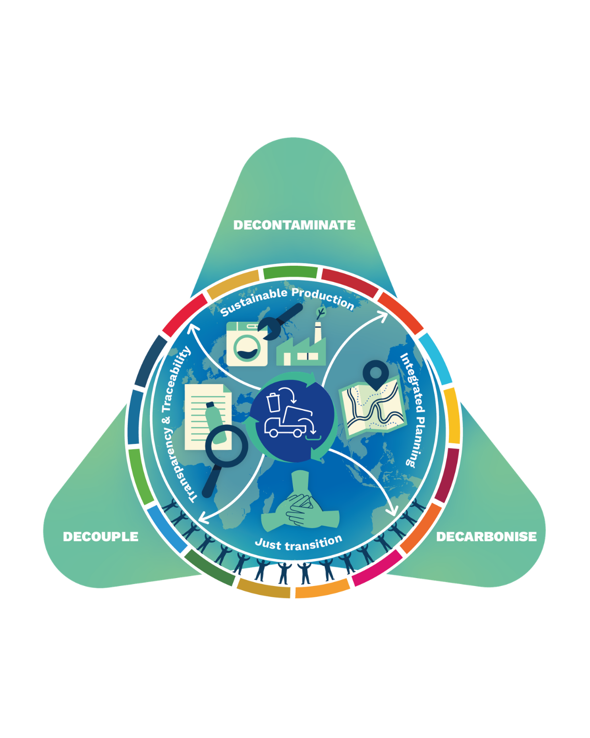 Sustainable and circular resources and waste management is therefore a key success factor in achieving a 3-D future, in which we decouple, decontaminate and decarbonise; a future that protects our health and biodiversity, while strengthening social justice, economic development and well-being.