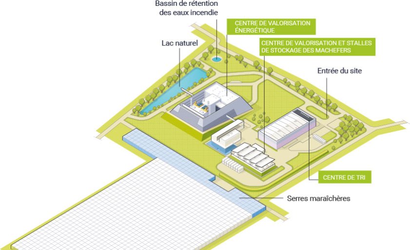 - Econotre, operated by SUEZ, uses the heat released by incineration of the waste to produce electricity.